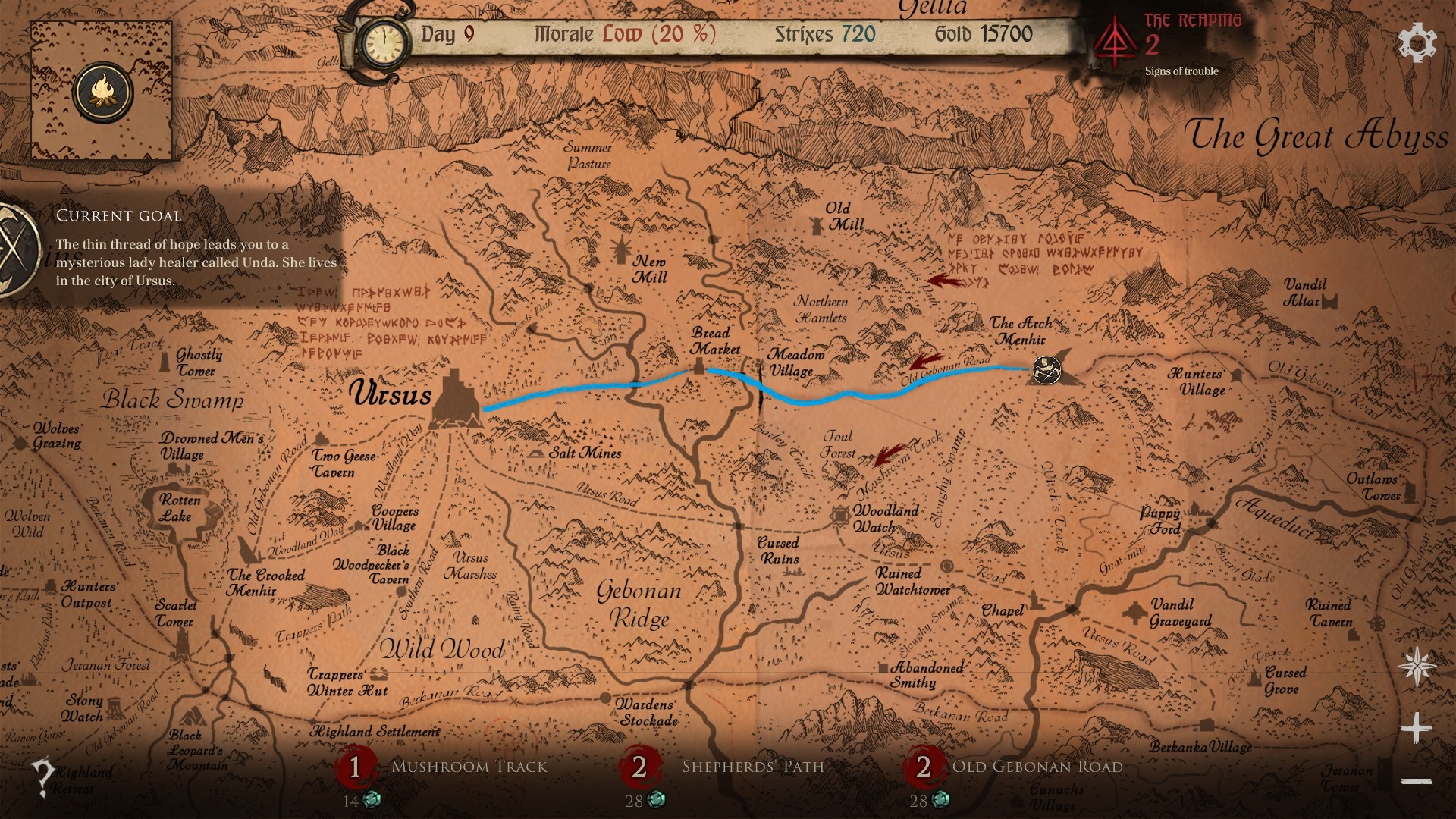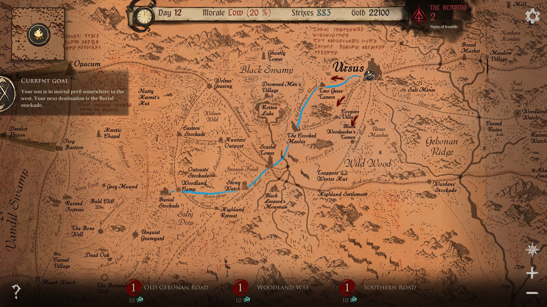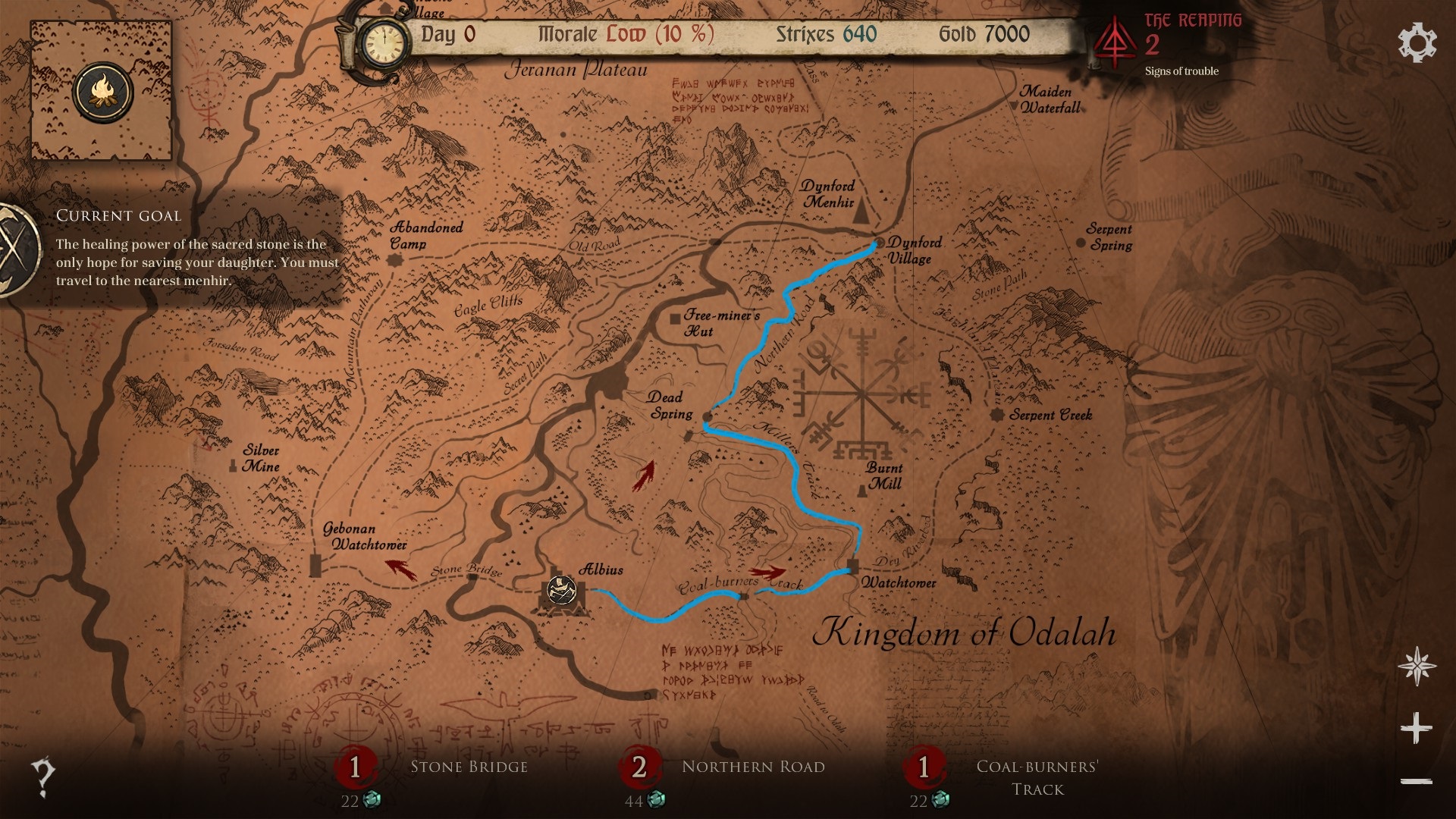 Tente não perder tempo fugindo de batalhas, se escondendo de inimigos, ajudando pessoas na estrada e tente seguir os melhores caminhos possíveis e ao chegar na Torre Branca provavelmente encontrará seu filhos com as 2 mãos, caso contrário encontrará ele vivo mas como um braço apenas. Abaixo seguem os mapas em ordem: